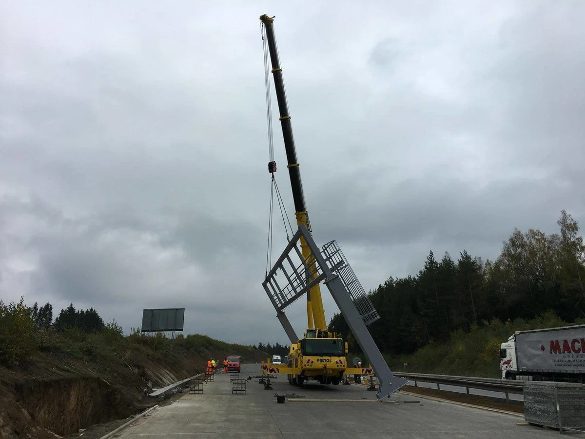 26 Octobre, 2017 - A new signal board is being mounted on the 77th km of the D1 motorway with the help of our