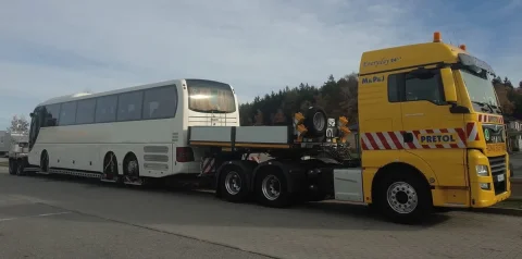 The latest addition to our fleet is a special vehicle for transporting tri-axle buses or large agricultural machinery, with a loading surface of 15 metres.