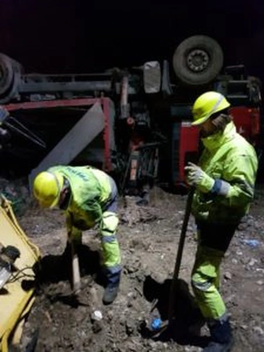 The main work involved overturning the trailer and the vehicle itself on the wheels and towing them, and tipping the excavator to the tracks. It was also necessary to remove the broken parts of the vehicle and excavator. The entire intervention was completed around four o'clock in the morning.